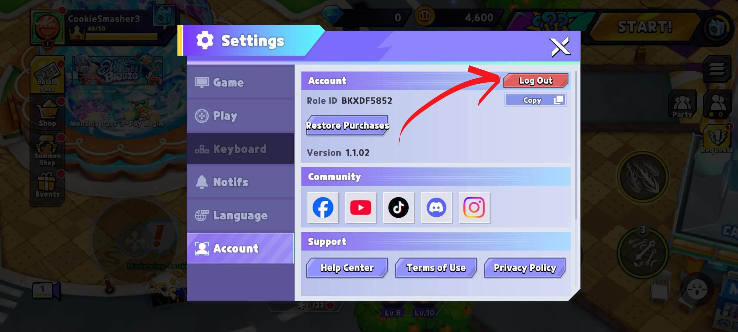 1. Relaunch the game, then head to Menu > Settings > Account and tap the Logout button. You may need to repeat this step 2–3 times to get it to appear!